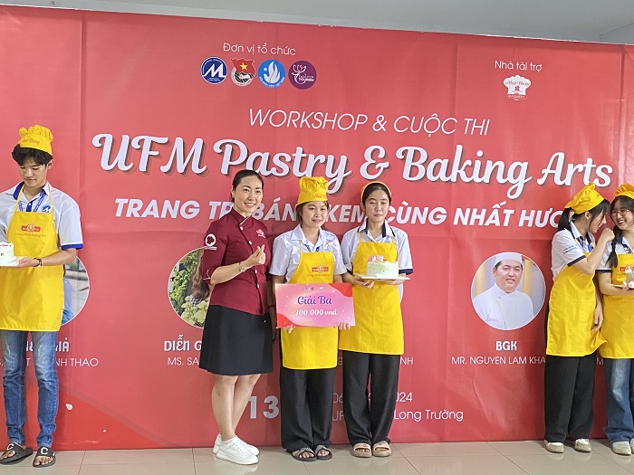 Nhằm mục đích mang đến trải nghiệm mới lạ với nghề làm bánh và những kiến thức bổ ích từ việc làm sao để có được một chiếc bánh kem thật bắt mắt và xinh xắn do chính tay mình tạo ra, Workshop chủ đề Trang trí Bánh Kem cùng Nhất Hương và chinh phục cuộc thi “UFM Pastry & Baking Arts” đã diễn ra thành công tốt đẹp vào chiều ngày 06/04/2024 tại Hội trường của Trường Đại học Tài chính – Marketing (UFM) cơ sở 306 Võ Văn Hát, phường Long Trường, thành phố Thủ Đức, Thành phố Hồ Chí Minh.