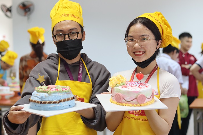 Không những vậy, các bạn sinh viên còn được trải nghiệm lần đầu chính tay mình trang trí một chiếc bánh kem thật xinh xắn, độc đáo theo sở thích và đem chiếc bánh kem ấy tặng cho người thân của mình. Qua đó, sinh viên sẽ được trang bị cho bản thân những kiến thức thật quý giá và bổ ích về quy trình để làm bánh kem, hiểu được những công đoạn trong quá trình làm bánh từ đó kích thích những đam mê và có thể là các bạn sẽ trở thành những “thợ làm bánh” tài hoa trong tương lai.