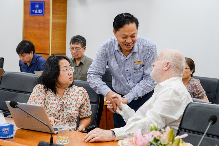 TS. Lê Trung Đạo trao quà và Thầy Cô chụp hình lưu niệm với Chuyên gia quốc tế
