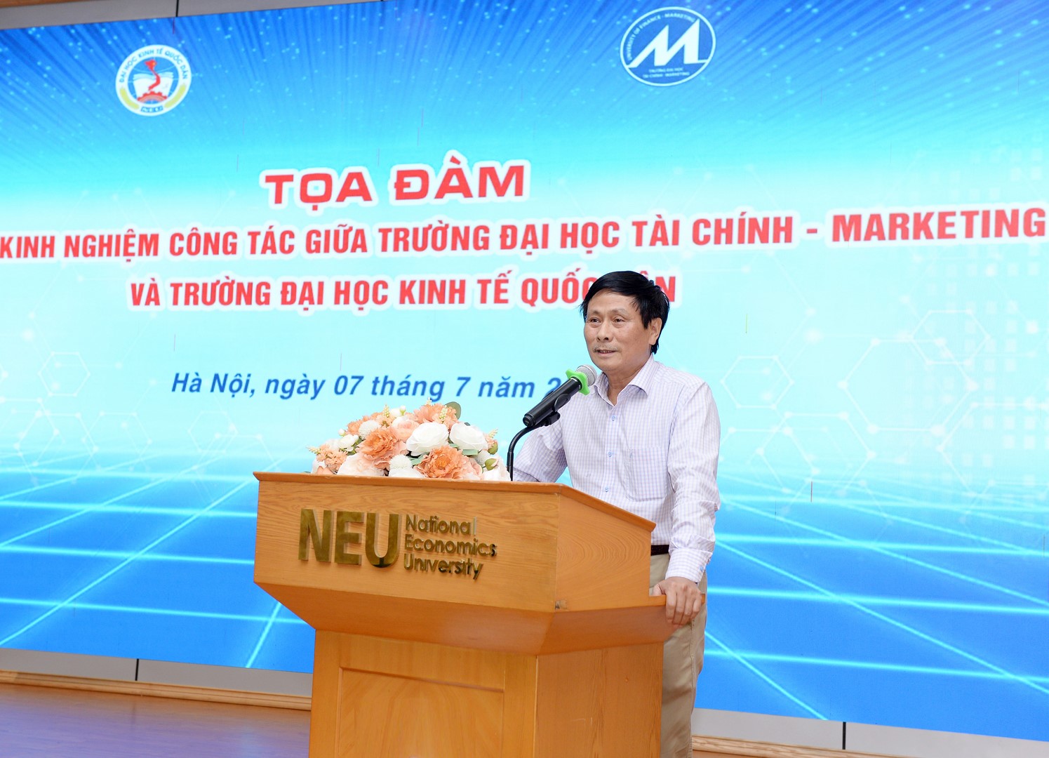 Thay mặt NEU, GS. TS. Phạm Hồng Chương nhiệt liệt chào mừng Đoàn cán bộ UFM đã đến thăm và trao đổi kinh nghiệm công tác tại NEU. GS. TS. Phạm Hồng Chương tin tưởng, buổi Tọa đàm ngày hôm nay sẽ là “viên gạch” vững chắc để phát triển mối quan hệ hợp tác toàn diện giữa hai trường, đồng thời mong muốn hai bên sẽ đạt được những thỏa thuận cho việc ký kết Biên bản ghi nhớ hợp tác sắp tới, qua đó hiện thực hóa và đem lại giá trị, lợi ích cho cán bộ giảng viên, sinh viên của hai đơn vị.