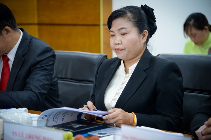 TS. Bun Phênh, Hiệu trưởng Trường Cao đẳng Tài chính miền Nam Lào rình bày tham luận tại Hội thảo