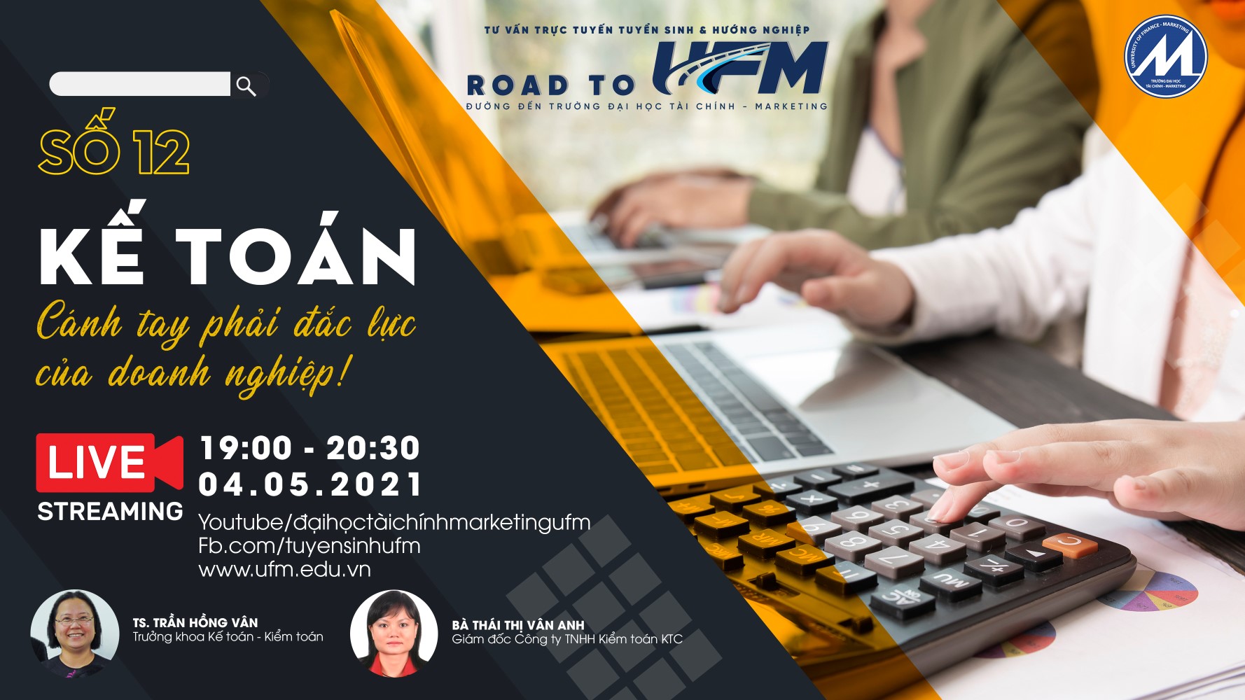 ?Livestream trên Page Tuyển sinh Đại học Tài chính - Marketing và Kênh Youtube của Trường.