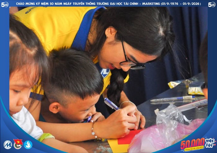 Phong trào “50.000 Việc tốt – Sắc vàng UFM đi muôn nơi” được triển khai từ đầu năm 2026, hướng đến chào mừng Kỷ niệm 50 năm Ngày truyền thống Trường Đại học Tài chính – Marketing (01/9/1976 – 01/9/2026). Con số 50.000 không chỉ mang ý nghĩa biểu trưng cho chặng đường 50 năm hình thành và phát triển của Nhà trường mà còn thể hiện kỳ vọng về sự lan tỏa rộng khắp của những hành động đẹp trong toàn thể sinh viên. Với quy mô gần 20.000 sinh viên, phong trào định hướng mỗi đoàn viên, thanh niên tham gia ít nhất hai việc làm tích cực, qua đó góp phần hình thành môi trường học đường văn minh, thân thiện và nhân văn, góp phần giáo dục đạo đức lối sống cho đoàn viên, thanh niên UFM.