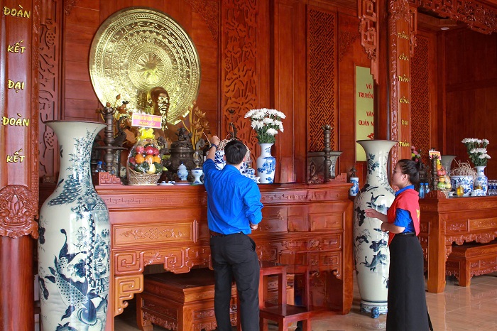 Đ/c Nguyễn Tiến Khôi, Bí thư Đoàn trường và các đồng chí Ban Thường vụ Đoàn trường và đại diện các cơ sở Đoàn trực thuộc dâng hương Chủ tịch Hồ Chí Minh, Đại tướng Võ Nguyên Giáp và các anh hùng liệt sĩ