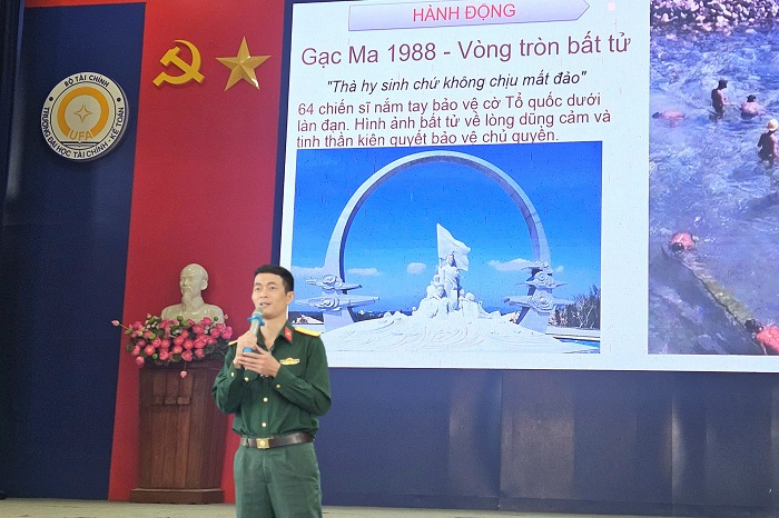Báo cáo chuyên đề “Biển đảo Việt Nam”do Trung tá Phan Hoài Ẩn - Phụ trách Ban Tuyên huấn, Phòng Chính trị, Bộ Chỉ huy quân sự tỉnh Quảng Ngãi trình bày