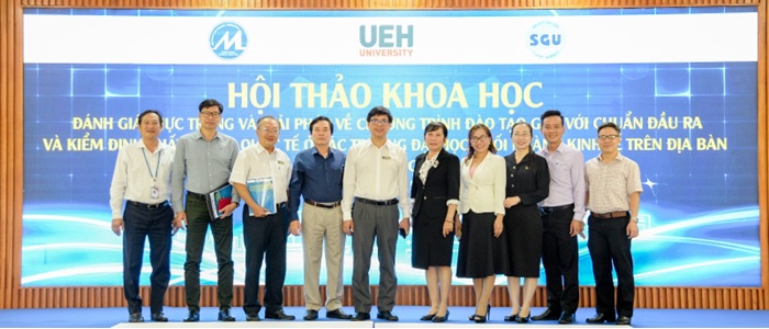 Sáng ngày 28/10/2022, Trường Đại học Tài chính – Marketing (UFM) đã chủ trì, phối hợp cùng với Trường Đại học Kinh tế TP.HCM (UEH), Trường Đại học Sài Gòn (SGU) tổ chức Hội thảo khoa học với chủ đề: “Đánh giá thực trạng và giải pháp về chương trình đào tạo gắn với chuẩn đầu ra và kiểm định chất lượng quốc tế ở các trường đại học khối ngành kinh tế trên địa bàn Thành phố Hồ Chí Minh”.