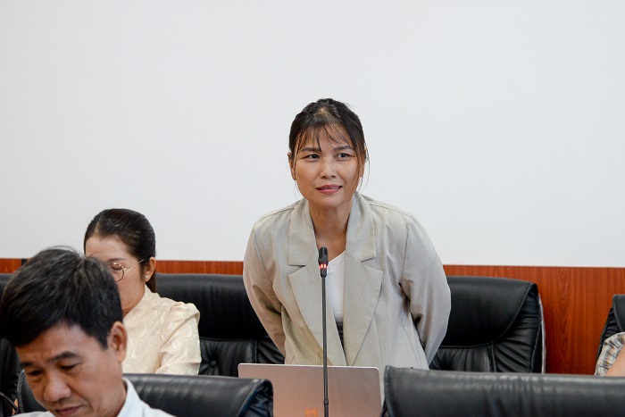 ThS. Hồ Thanh Trúc, Phó Trưởng khoa Thương mại và Du lịch phát biểu tại buổi gặp mặt