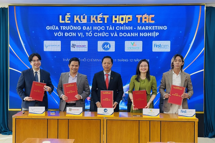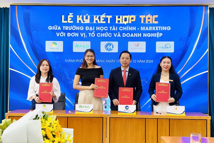 Sáng ngày 11/12/2024, Trường Đại học Tài chính – Marketing đã long trọng tổ chức Lễ ký kết hợp tác với 12 doanh nghiệp, tổ chức thuộc các lĩnh vực Marketing, Kinh doanh quốc tế và Quản trị kinh doanh.