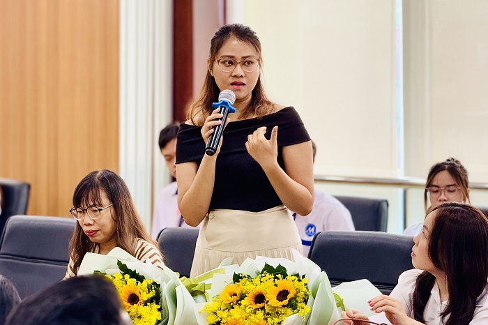 Bà Đinh Mộng Kha, Giám đốc điều hành, thành viên HĐQT Công ty cổ phần xích việt (VietGuys) phát biểu tại buổi lễ