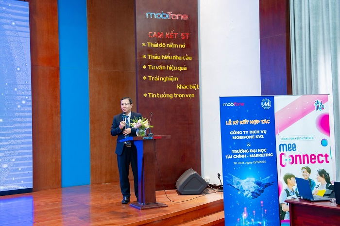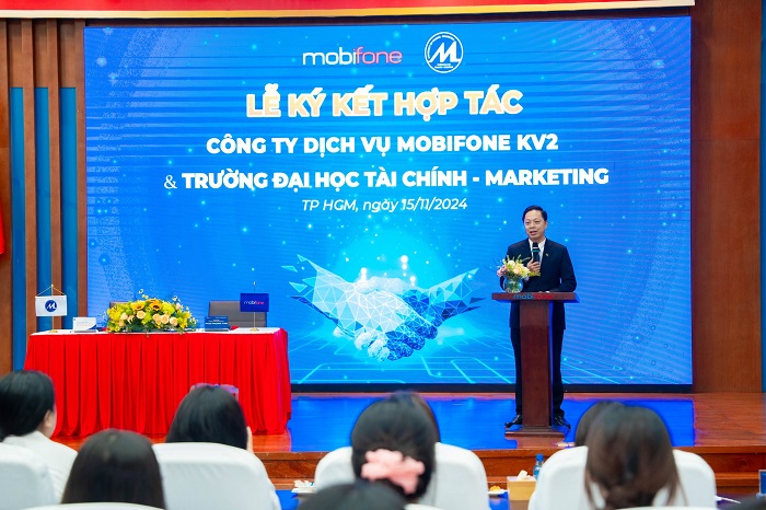 Phát biểu tại buổi lễ, TS. Lê Trung Đạo, Phó Hiệu trưởng Nhà trường nhấn mạnh, “Thời gian vừa qua giữa Trường Đại học Tài chính- Marketing và MobiFone đã có nhiều chương trình gắn kết và tại buổi lễ ký kết ngày hôm nay, 2 đơn vị chính thức bước vào trang sử mới. Rất cảm ơn MobiFone đã tạo điều kiện cho Thầy Cô giáo và Sinh viên của nhà trường có cơ hội trải nghiệm và tiếp cận với các hoạt động của MobiFone để từ đó chúng tôi nâng cao được thêm chất lượng đào tạo. Qua đây, chúng tôi cam kết với MobiFone sẽ ứng dụng tốt nhất những kiến thức, kỹ năng, cơ hội mà MobiFone đã tạo điều kiện cho nhà trường và sẽ ưu tiên cung cấp nguồn sinh viên tốt nhất của chúng tôi để có thể phục vụ cho nhu cầu nguồn nhân lực của Công ty.”