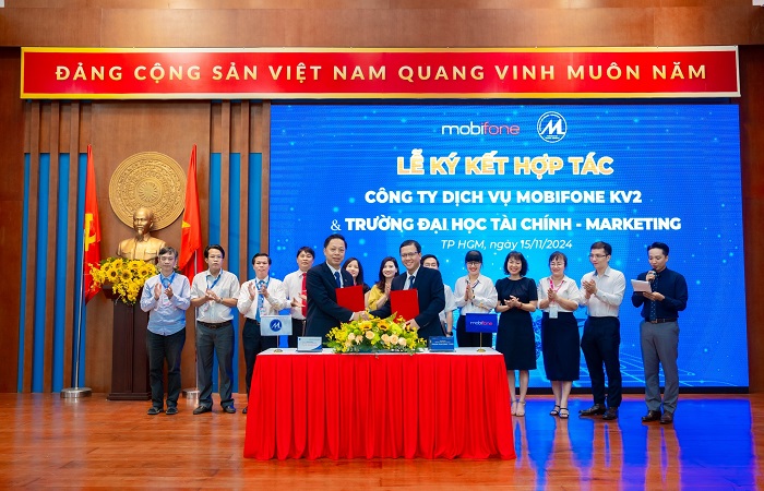 Sáng ngày 15/11/2024, Trường Đại học Tài chính – Marketing (UFM) và công ty dịch vụ Mobifone khu vực 2 đã long trọng tổ chức Lễ Ký kết hợp tác với sự tham dự của Lãnh đạo 2 đơn vị và hơn 200 sinh viên của Nhà trường.