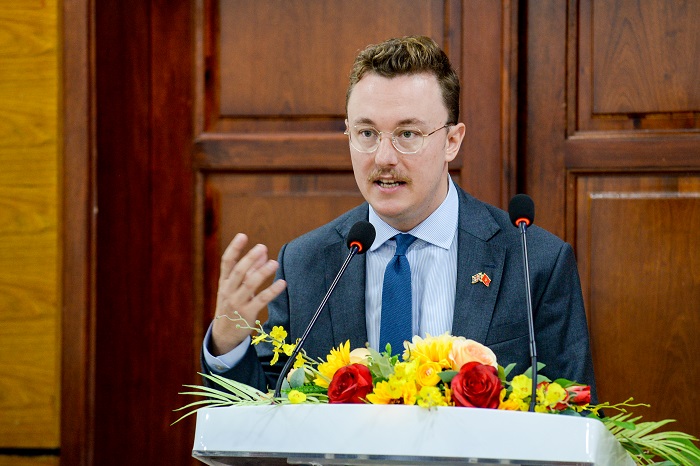 Ông William Lawrenson, Phó Tổng Lãnh sự Vương Quốc Anh tại TP.HCM, Trưởng phòng Thương mại và Đầu tư Tổng lạnh sự Anh tại TP.HCM phát biểu tại chương trình