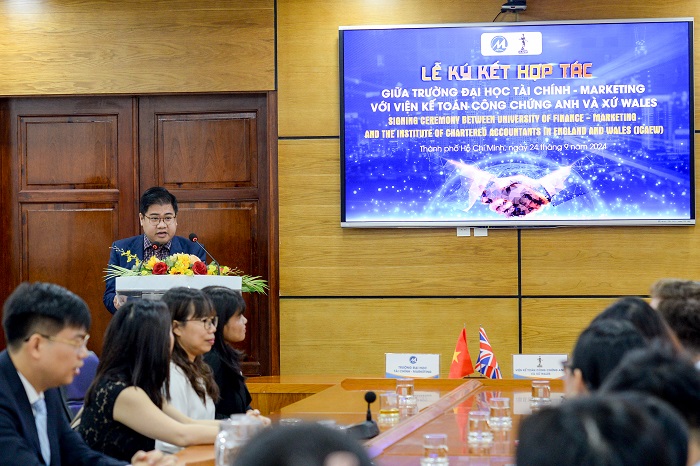 Sáng ngày 24/9/2024, Trường Đại học Tài chính – Marketing (UFM) đã long trọng tổ chức Lễ ký kết hợp tác với Viện kế toán công chứng Anh và xứ Wales (ICAEW). Buổi lễ vinh dự được đón tiếp lãnh đạo Tổng Lãnh sự Vương Quốc Anh tại TP.HCM.
