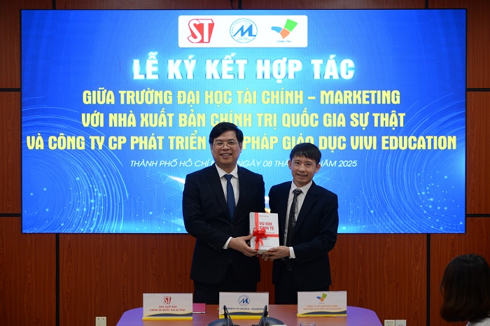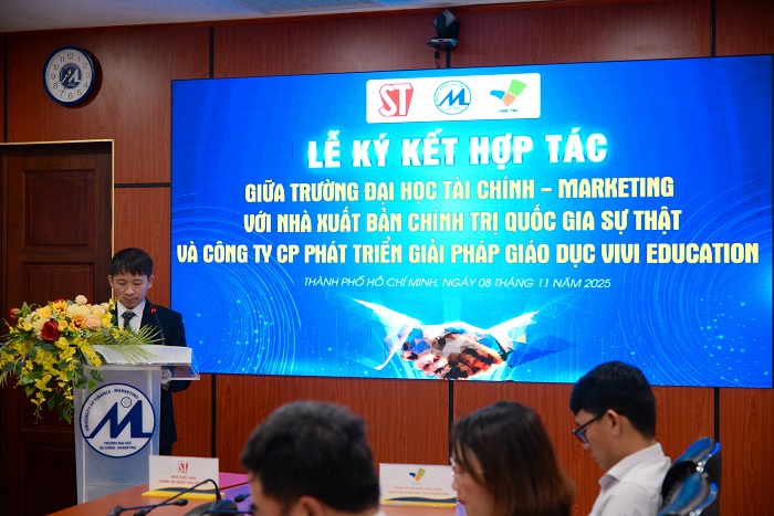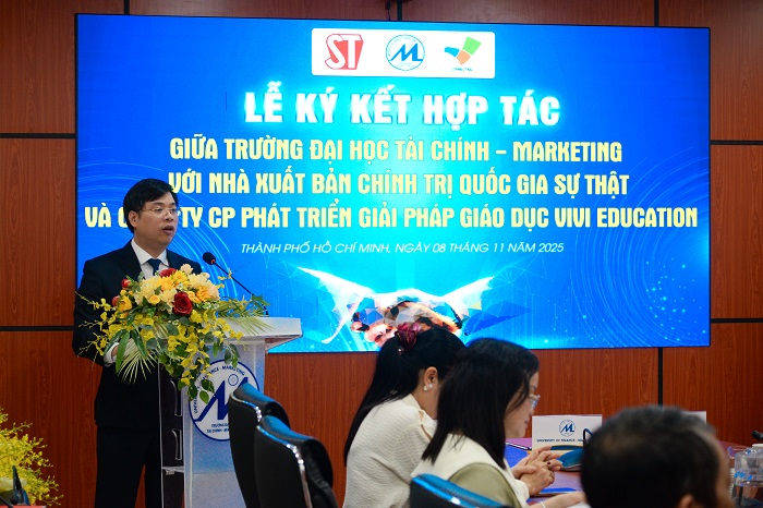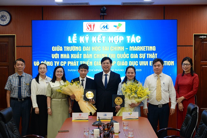 Sáng ngày 8/11/2025, tại Trường Đại học Tài chính – Marketing (UFM) đã diễn ra Lễ ký kết thỏa thuận hợp tác chiến lược giữa Nhà trường và Nhà xuất bản Chính trị Quốc gia Sự thật – đơn vị xuất bản hàng đầu trực thuộc Ban Tuyên giáo Trung ương và Công ty Cổ phần Phát triển Giải pháp giáo dục VIVI Education. Tham dự buổi lễ có đại diện lãnh đạo hai đơn vị cùng các phòng, khoa, trung tâm, giảng viên và sinh viên quan tâm đến công tác nghiên cứu, xuất bản và truyền thông học thuật.