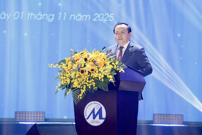 Phát biểu tại buổi lễ, PGS.TS Phạm Tiến Đạt – Bí thư Đảng ủy, Hiệu trưởng Nhà trường đã gửi lời chúc mừng nồng nhiệt đến các tân sinh viên khóa 25D. Thầy nhấn mạnh ý nghĩa của Lễ Khai khóa như một dấu mốc khởi đầu hành trình học tập, rèn luyện và trưởng thành của mỗi sinh viên. Thầy khẳng định, UFM không chỉ là nơi truyền thụ tri thức, mà còn là môi trường nuôi dưỡng đam mê, bản lĩnh và khát vọng vươn xa của thế hệ trẻ, hướng đến xây dựng đội ngũ nguồn nhân lực chất lượng cao cho xã hội.