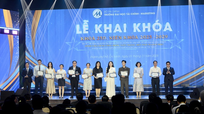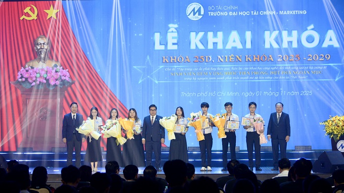 Sáng ngày 01/11/2025, tại Hội trường cơ sở Long Trường, Trường Đại học Tài chính – Marketing (UFM) long trọng tổ chức Lễ Khai khóa 25D – Niên khóa 2025–2029, chào đón gần 6.300 tân sinh viên chính thức trở thành thành viên của đại gia đình UFM. Buổi lễ diễn ra trong không khí trang trọng, ấm áp và đầy cảm xúc.