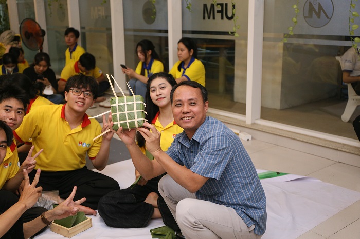 Niềm vui, sự phấn khởi hiện rõ trên gương mặt của các bạn sinh viên và thầy cô UFM khi những chiếc bánh chưng, bánh tét vuông vức, thơm ngon, đẹp mắt lần lượt được hoàn thành