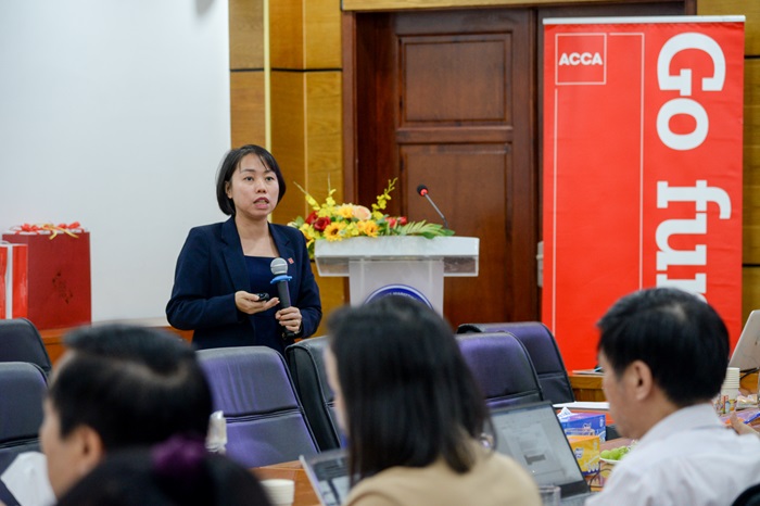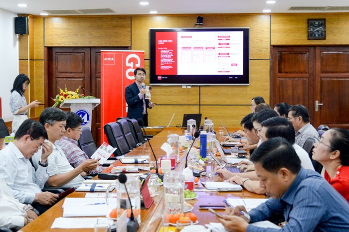 Đại diện ACCA trình bày nội dung: “Chia sẻ kinh nghiệm tích hợp thành công chứng chỉ quốc tế vào chương trình đào tạo tại các trường đại học trên toàn quốc”