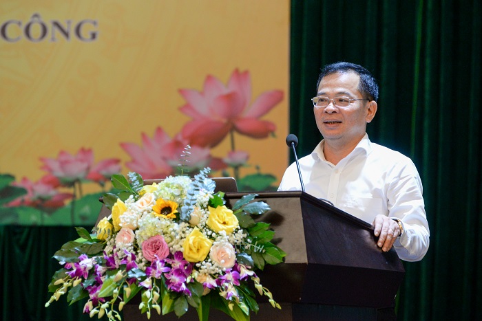 Ông Nguyễn Tân Thịnh, Cục trưởng Cục Quản lý công sản, Bộ Tài chính phát biểu tại Hội nghị