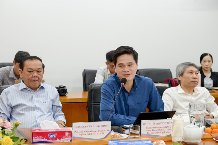 Về phía chương trình KX01, KX06, có sự tham dự của GS.TS. Phạm Hồng Chương, Hiệu trưởng Trường Đại học Kinh tế Quốc dân, Chủ nhiệm Chương trình KX01; GS.TS. Nguyễn Đông Phong, Chủ tịch Hội đồng Đại học, Đại học Kinh tế TP.HCM, Phó chủ nhiêm Chương trình KX01; PGS.TS. Bùi Quang Tuấn, Viện trưởng, Viện Kinh tế Việt Nam; GS.TS. Tô Trung Thành, Trưởng phòng QLKH, Trường ĐH Kinh tế Quốc dân; PGS.TS. Đỗ Hương Lan, Phó giám đốc Trung tâm Khởi nghiệp Đổi mới sáng tạo, Trường ĐH Kinh tế Quốc dân, Thư kí chương trình KX06; PGS.TS. Vũ Hoàng Nam, Trưởng phòng QLKH, Trường Đại học Ngoại Thương; TS. Nguyễn Văn Hưng, Trường ĐH Kinh tế Quốc dân.