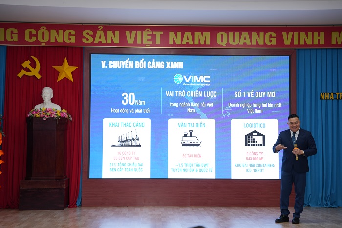 Diễn giả TS. Lê Quang Trung - Phó Tổng Giám đốc Tổng Công ty Hàng hải Việt Nam trình bày tham luận