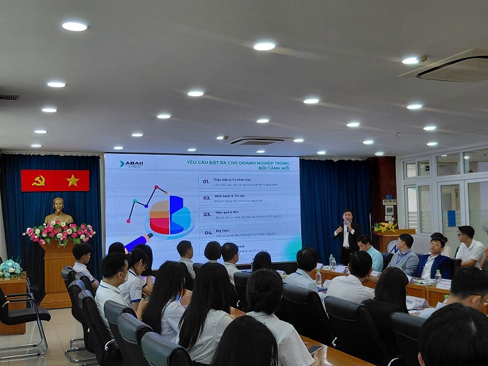 Ông Đỗ Văn Minh – Giám đốc Chuyển đổi số khu vực phía Nam, Viện Công nghệ Blockchain và Trí tuệ nhân tạo ABAII – trình bày báo cáo với chủ đề “Tư duy và ứng dụng AI, Blockchain trong Marketing hiện đại”, tập trung vào việc định hình lại tư duy công nghệ và khai thác các nền tảng kỹ thuật số để xây dựng hệ sinh thái khách hàng hiệu quả, minh bạch và cá nhân hóa.