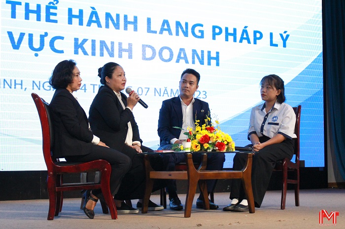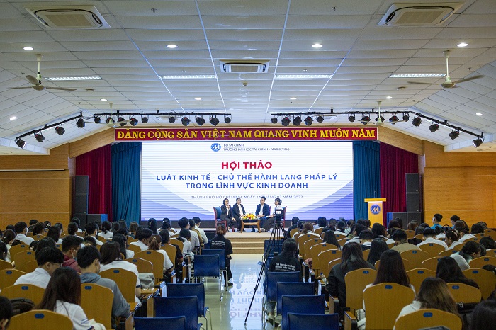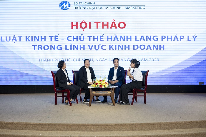 Ngày 14/7/2023 vừa qua, tại Trường Đại học Tài chính – Marketing (UFM) quận 7 đã diễn ra buổi hội thảo “Luật kinh tế - Hành lang pháp lý trong lĩnh vực kinh doanh ”. Chương trình đã thu hút sự quan tâm của hơn 700 sinh viên có mặt tại Hội trường và 300 sinh viên dự online trên MS Teams. Về phía Nhà trường, Cô Nguyễn Thị Kim Phụng – Phó Giám đốc Trung tâm Tuyển sinh và Quan hệ doanh nghiệp, Thầy Trần Văn Bình – Phó Trưởng Khoa Kinh tế - Luật, đại diện Nhà trường, khai mạc và hỗ trợ buổi Hội thảo diễn ra thành công, tốt đẹp.