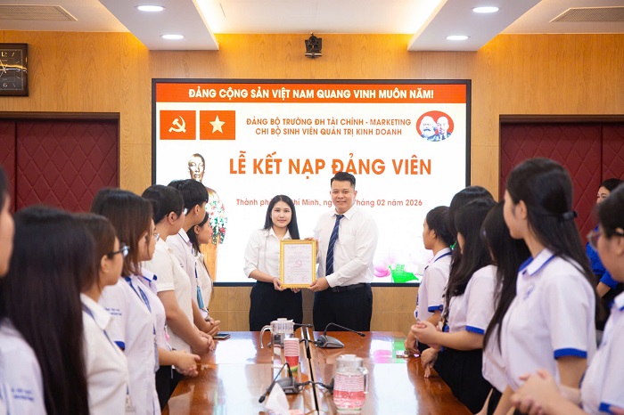 Tiếp nối chuỗi hoạt động chào mừng, sáng 3/2/2026, Chi bộ sinh viên Quản trị kinh doanh đã tổ chức Lễ kết nạp Đảng viên mới trong không khí trang nghiêm, xúc động, thể hiện sự trưởng thành về nhận thức chính trị và niềm vinh dự của sinh viên UFM khi được đứng vào hàng ngũ của Đảng.