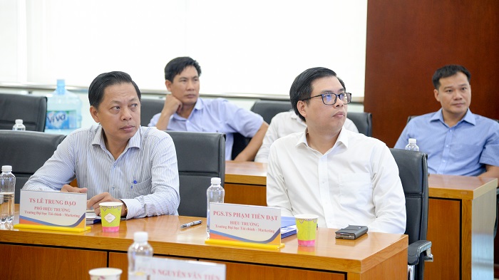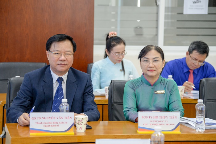 Tham gia Hội nghị có sự hiện diện của GS.TS Nguyễn Văn Tiến, thành viên Hội đồng Giáo sư Ngành Kinh tế; PGS.TS Hồ Thủy Tiên, Bí thư Đảng ủy, Chủ tịch Hội đồng Trường; PGS.TS Phạm Tiến Đạt, Hiệu trưởng; TS. Lê Trung Đạo, Phó Hiệu trưởng cùng các thầy cô là lãnh đạo các đơn vị thuộc Trường và đông đảo các thầy cô giảng viên, cán bộ viên chức.