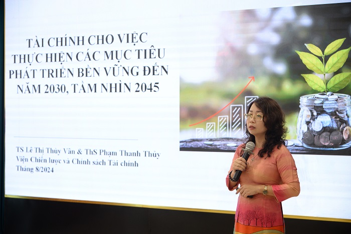 Tham luận 1: Tài chính cho việc thực hiện các mục tiêu phát triển bền vững đến năm 2030, tầm nhìn 2045. Diễn giả: TS. Lê Thị Thùy Vân (Phó Viện trưởng, Viện Chiến lược và chính sách tài chính – Bộ Tài chính)
