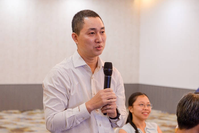 Trao đổi, góp ý kiến tại buổi họp mặt, các Phó Giáo sư và các Tiến sĩ đề nghị Nhà trường hỗ trợ để các giảng viên có điều kiện tham gia thực hiện đề tài nghiên cứu khoa học cấp Quốc gia (đề tài nhánh), chủ nhiệm đề tài cấp Bộ/Tỉnh và có cơ chế nhằm đẩy mạnh công bố quốc tế tại Trường. PGS.TS Phạm Tiến Đạt đã trao đổi, trả lời một số ý kiến đóng góp, đề nghị của giảng viên tại buổi họp mặt.