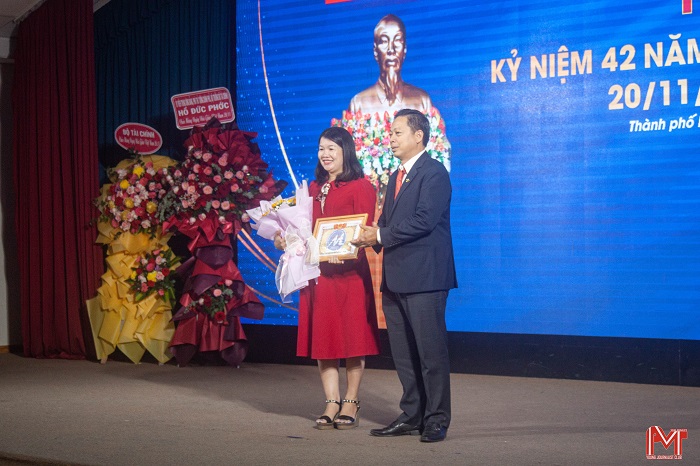 Tại buổi họp mặt, PGS.TS Hồ Thủy Tiên, Bí thư Đảng ủy, Chủ tịch Hội đồng trường đã thay mặt lãnh đạo Trường đọc bức thư của Ủy viên BCH Trung ương Đảng, Phó Thủ tướng Chính phủ, Bộ trưởng Bộ Tài chính Hồ Đức Phớc gửi chúc mừng các thầy giáo, cô giáo, viên chức và người lao động Trường Đại học Tài chính - Marketing.