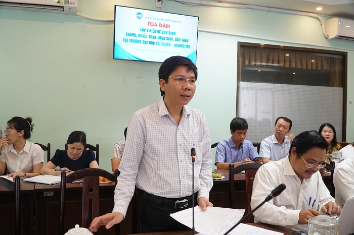 Phát biểu chỉ đạo tại buổi Tọa đàm, PGS.TS. Phạm Tiến Đạt nhấn mạnh tầm quan trọng của việc xây dựng và ban hành Bộ quy trình thanh toán, mua sắm, đấu thầu tại Trường Đại học Tài chính - Marketing. Ngoài các quy định của pháp luật và quy chế, quy định của Trường, Bộ quy trình là hành lang pháp lý cho các đơn vị trong Trường biết cách thực hiện nhằm bảo đảm tính công khai, minh bạch trong công tác thanh toán, mua sắm tài sản, hàng hóa, dịch vụ tại Trường. Bộ quy trình này có hơn 50 hồ sơ, biểu mẫu, trong đó quy định rõ ai/đơn vị nào tham gia thực hiện và làm việc gì. Khoa Khoa Kế toán - Kiểm toán cũng có thể tham khảo dùng làm case study trong giảng dạy. Sau khi ban hành, Bộ quy trình này sẽ được số hóa.