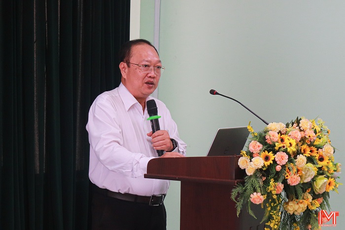 PGS.TS Phạm Quốc Việt, Phó Hiệu trưởng Nhà trường phát biểu khai mạc, nhấn mạnh vai trò then chốt của công tác đánh giá chuẩn đầu ra trong việc nâng cao chất lượng đào tạo và đáp ứng nhu cầu của xã hội.