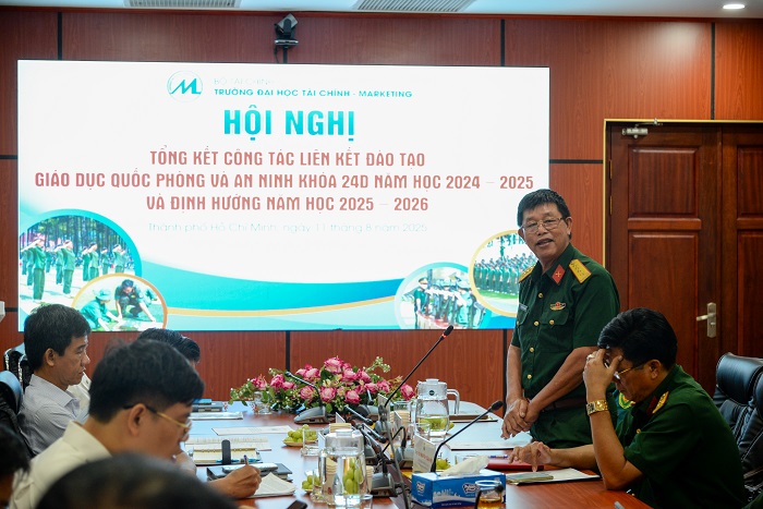 Chiều ngày 11/8/2025, Trường Đại học Tài chính – Marketing đã tổ chức Hội nghị tổng kết công tác liên kết đào tạo Giáo dục quốc phòng và an ninh khóa 24D năm học 2024 – 2025, định hướng năm học 2025 – 2026.