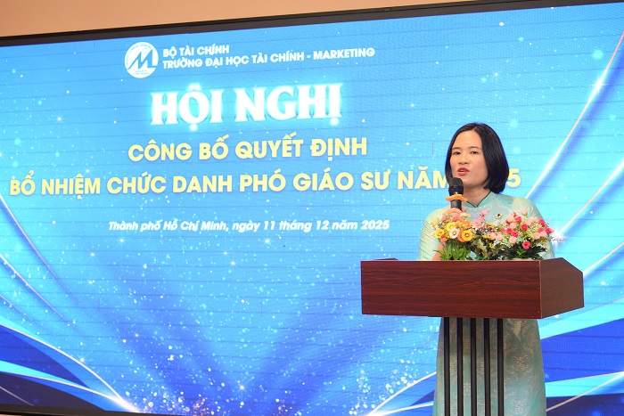 Chiều ngày 11/12/2025, Trường Đại học Tài chính – Marketing long trọng tổ chức Hội nghị công bố Quyết định bổ nhiệm chức danh Phó Giáo sư ngành Kinh tế năm 2025 cho 7 thầy cô là cán bộ, viên chức của Nhà trường.