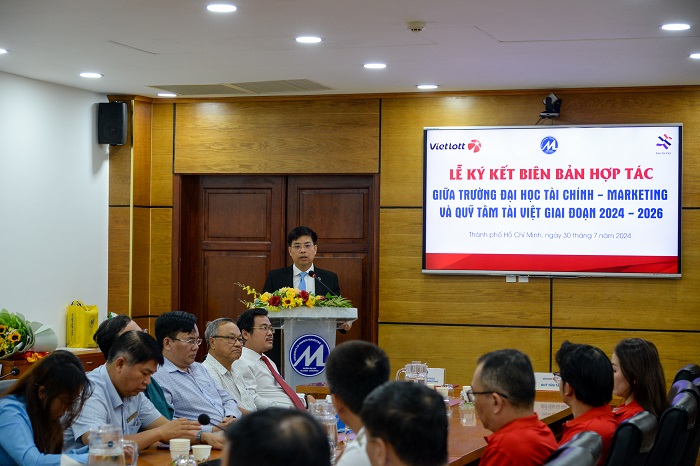 Phát biểu tại buổi lễ, PGS.TS Phạm Tiến Đạt, Hiệu trưởng UFM nhấn mạnh, Trường Đại học Tài chính – Marketing là một trong những cơ sở đào tạo công lập uy tín, chất lượng; hằng năm cung cấp cho thị trường lao động hàng nghìn nhân lực chất lượng cao trong lĩnh vực tài chính, marketing, thương mại…Chính vì vậy, việc Nhà trường ký kết hợp tác chiến lược với Quỹ Tâm Tài Việt không chỉ góp phần xây dựng mối quan hệ hợp tác lâu dài mà còn đóng vai trò quan trọng trong công tác đào tạo, chia sẻ và học tập kinh nghiệm lẫn nhau; hướng đến các hoạt động an sinh xã hội trong lĩnh vực giáo dục và đào tạo; từ đó mang đến các chương trình thiết thực, ý nghĩa, góp phần nâng cao chất lượng đào tạo và giúp sinh viên phát triển một cách toàn diện.