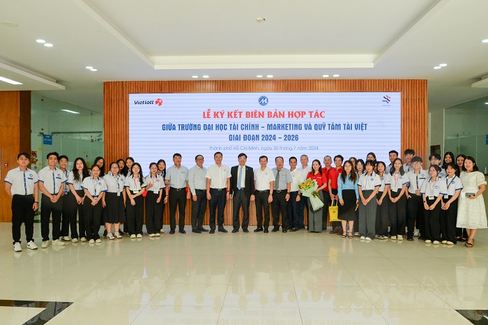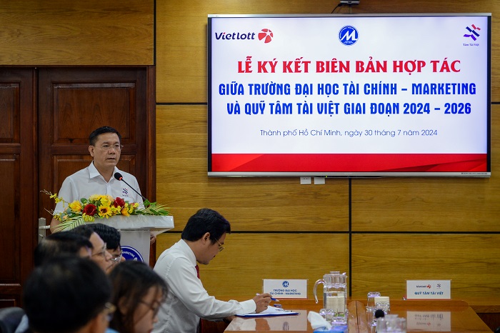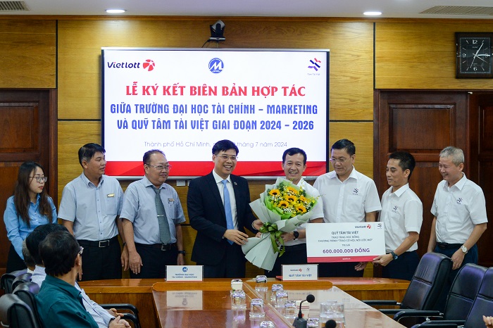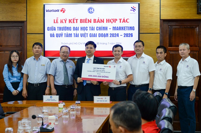 Chiều ngày 30/7/2024, Trường Đại học Tài chính – Marketing (UFM) và Quỹ Tâm Tài Việt thuộc Công ty Xổ số Điện toán Việt Nam (Vietlott – Bộ Tài chính) đã ký kết biên bản ghi nhớ hợp tác chiến lược và trao tặng học bổng “Trao cơ hội, nối ước mơ” trị giá 600 triệu đồng.