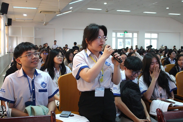 Đến với buổi Workshop, UFMers mong muốn trau dồi thêm thật nhiều kinh nghiệm cho bản thân cũng như định hướng mục tiêu cho tương lai, vì thế các bạn đã mang đến những câu hỏi vô cùng đa dạng và có chiều sâu. “Khi em bắt đầu kì thực tập thì em cần phải có những kiến thức và kỹ năng nào để đáp ứng đủ những điều kiện khi đi thực tập. Bên cạnh đó thì những khó khăn và thử thách nào em sẽ phải đối mặt”. “Với dự đoán tình hình nền kinh tế suy thoái như hiện tại, diễn giả đánh giá như thế nào về thị trường tài chính nói chung và ngân hàng nói riêng?”. Từ những câu hỏi vi mô đến vĩ mô các bạn đều hăng hái bày tỏ những thắc mắc của mình. Chương trình được dẫn bắt bởi MC Ngọc Anh và MC Trần Trang nên sự tương tác giữa sinh viên với diễn giả được tối ưu hóa, luôn trong trạng thái tốt nhất, cập nhật liên tục những câu hỏi xuất sắc nhất.
