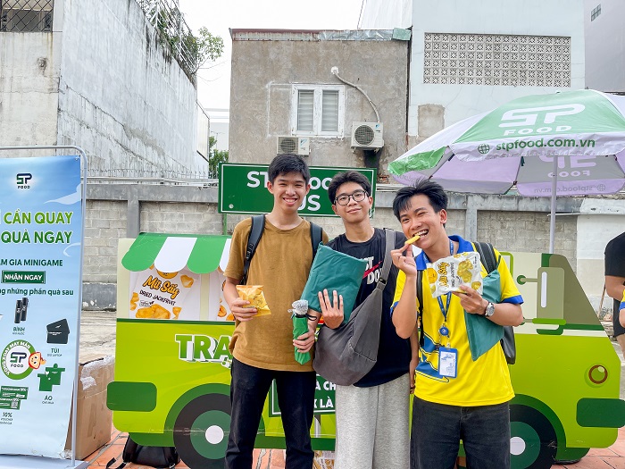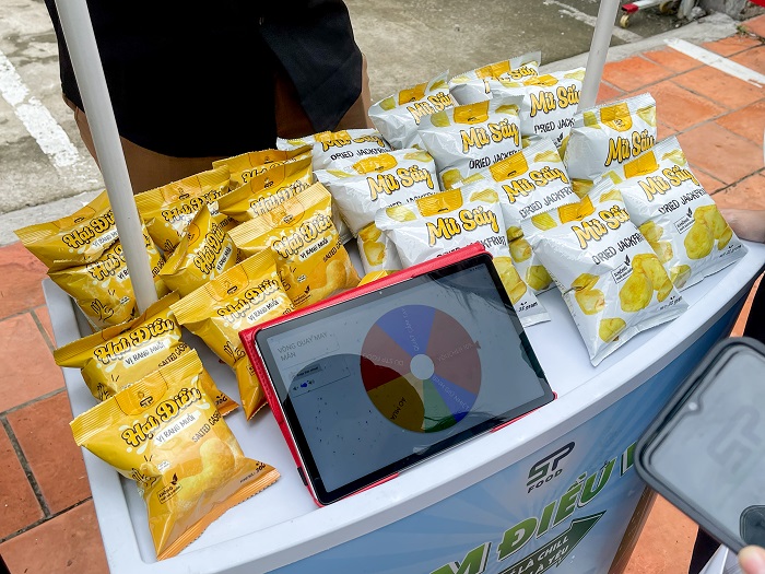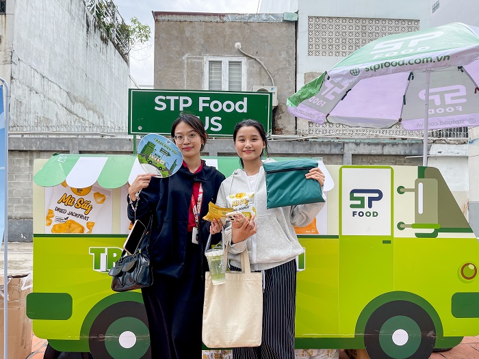 Không chỉ dừng lại ở những chia sẻ trong hội trường, chương trình còn mang đến một trải nghiệm thực tế đầy màu sắc và hương vị. Song song với workshop, School Tour "TRẠM ĐIỀU VUI - STP FOOD SNACK STATION" đã mang các sản phẩm nông sản Việt đến gần hơn với sinh viên. Các bạn đã được thưởng thức miễn phí những dòng snack healthy làm từ 100% nông sản Việt Nam như hạt điều, chuối sấy, mít sấy… được sản xuất theo quy trình xanh, sạch, không chất bảo quản. Không khí trở nên náo nhiệt hơn bao giờ hết với hoạt động Vòng quay may mắn, nơi các bạn sinh viên tham gia minigame và có cơ hội 100% trúng những phần quà độc đáo, thiết thực từ STP Food.