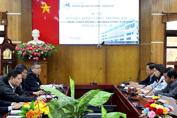 Sáng ngày 22/01/2026 tại Trụ sở Trường Đại học Tài chính - Kế toán, số 02 Lê Quý Đôn, xã Tư Nghĩa, tỉnh Quảng Ngãi, Trường Đại học Tài chính - Marketing (UFM) đã tiếp và làm việc với Hội đồng thẩm định của Bộ Giáo dục và Đào tạo (Bộ GD&ĐT) đối với Đề án thành lập Phân hiệu Trường Đại học Tài chính - Marketing tại tỉnh Quảng Ngãi (thẩm định thực tế). Hội đồng thẩm định được thành lập theo Quyết định số 84/QĐ-BGDĐT ngày 16/01/2026 của Bộ trưởng Bộ Giáo dục và Đào tạo.