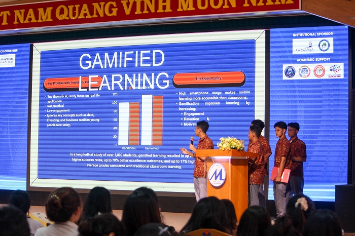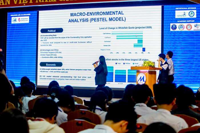 Kịch tính được đẩy lên tột độ ở phần thi chung cuộc – nơi 06 “chiến binh” mạnh nhất bước vào cuộc so găng hùng biện bằng tiếng Anh. Không khí hội trường lầu 7 như vỡ òa trước những màn phản biện sắc lẹm và phong thái đĩnh đạc của các đội thi. Tại đây, tư duy logic và kỹ năng giải quyết vấn đề đã được đẩy tới giới hạn, biến những khái niệm trừu tượng thành các giải pháp kinh doanh thuyết phục, khiến hơn 600 người xem không thể rời mắt.