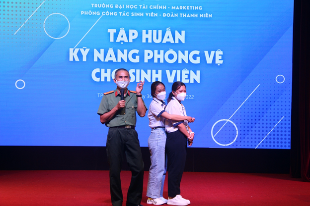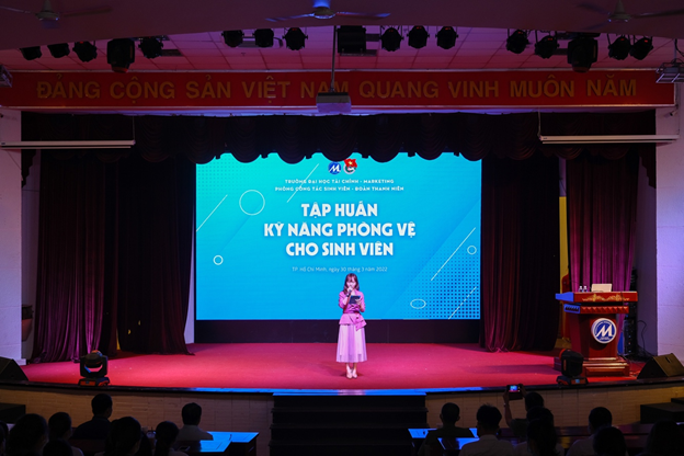 Sáng 30/3/2022 Chuyên đề Tập huấn Kỹ năng phòng vệ cho sinh viên nằm trong chuỗi chương trình hội thảo “Trang bị kĩ năng thực hành xã hội và tư vấn chăm sóc sức khỏe cho sinh viên” do Phòng Công tác sinh viên và Đoàn Trường Đại học Tài chính – Marketing phối hợp tổ chức được diễn ra tại Hội trường cơ sở thành phố Thủ Đức.