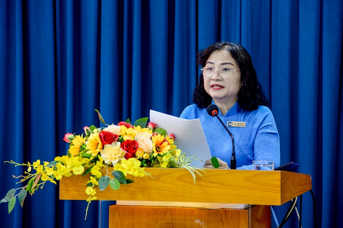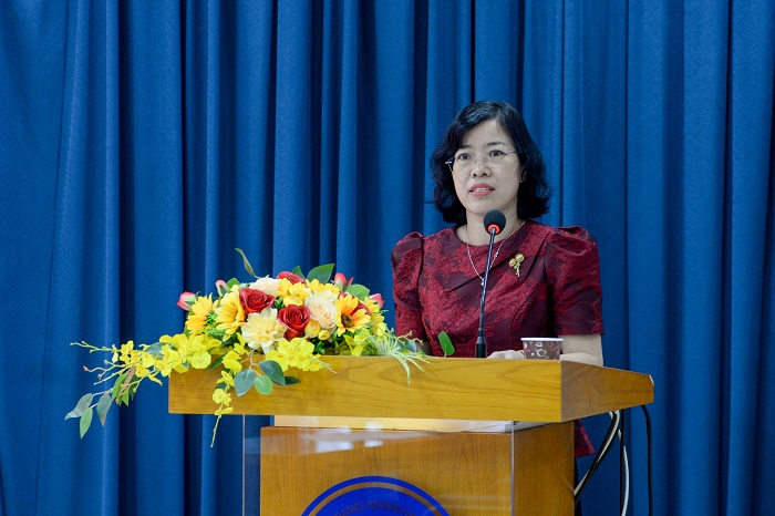 Đồng chí Nguyễn Thị Là, Phó bí thư thường trực Đảng ủy khối Đại học, Cao đẳng TP.HCM phát biểu chỉ đạo tại Hội nghị