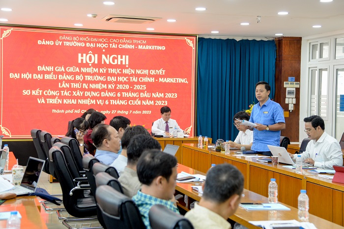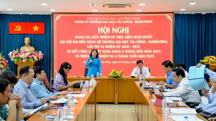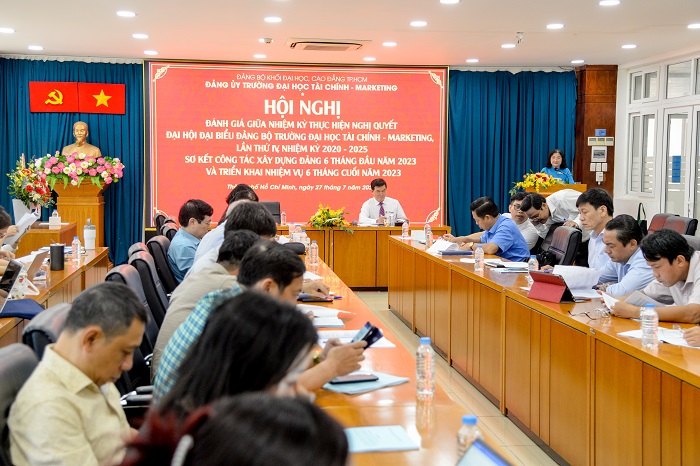 Sáng ngày 27/7/2023, Đảng ủy Trường Đại học Tài chính – Marketing (UFM) đã tổ chức Hội nghị đánh giá giữa nhiệm kỳ thực hiện nghị quyết Đại hội đại biểu Đảng bộ Trường Đại học Tài chính – Marketing nhiệm kỳ IV (2020 – 2025) và sơ kết công tác xây dựng Đảng 6 tháng đầu năm 2023, triển khai nhiệm vụ công tác 6 tháng cuối năm 2023.