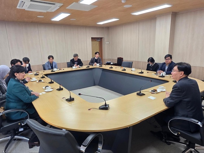 Hình ảnh buổi làm việc giữa lãnh đạo Trường Đại học Tài chính – Marketing và lãnh đạo Đại học Quốc gia Gyeongkuk, Hàn Quốc