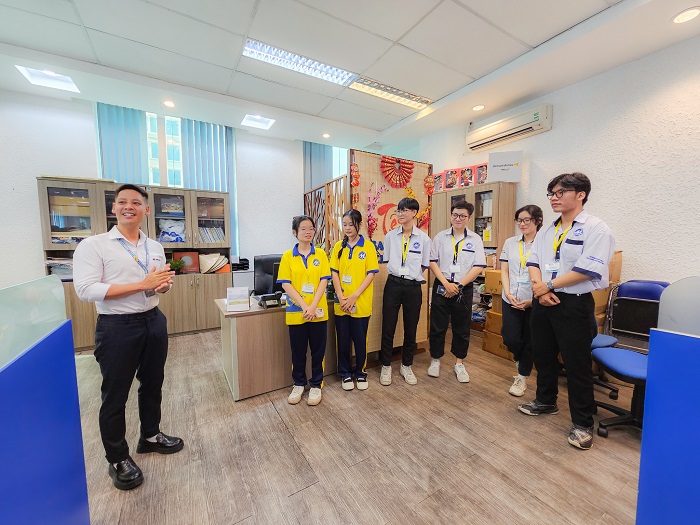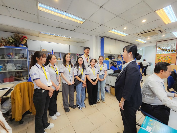 Trong quá trình học tập thực tế, các bạn sinh viên đã được nghe giới thiệu và tham quan các phòng làm việc của Vietravel và hiểu cách thức vận hành cũng như về cơ cấu làm việc của nơi đây. Tại Vietravel các bạn sinh viên đã đi qua các đơn vị như: Khối Kinh doanh Du lịch Khách lẻ, Khối Kinh doanh Du lịch Khách đoàn, Ban Tiếp thị, Khối Điều hành, Trung tâm Điều hành Hướng dẫn viên Việt Nam, Ban Tổ chức Nhân sự, Ban Kế hoạch & Phát triển Kinh doanh, Văn phòng Công ty, Vietravel Academy. Với khối kinh doanh sẽ giữ vai trò nòng cốt trong việc tìm kiếm và xây dựng các đối tác, khách hàng mới, quản lý quan hệ với đối tác và khách hàng hiện có. Nhằm đáp ứng dịch vụ du lịch từ khách đoàn hay khách lẻ và giải quyết các phản hồi của khách hàng một cách kịp thời trong khi vận hành tour; Hay Ban tiếp thị mong muốn lan tỏa và truyền thông các giá trị dịch vụ của Vietravel đến các khách hàng trong và ngoài nước đặc biệt là trong đại chuyển đổi số như hiện nay. Bên cạnh đó, Khối Điều hành chịu trách nhiệm kết nối tất cả các khâu, các bộ phận, nhân sự trong chuỗi hoạt động tạo nên một chương trình du lịch cho du khách đầy hấp dẫn, ấn tượng, chuyên nghiệp từ khâu bắt đầu đến khâu kết thúc hành trình tour cho du khách hay Ban Tổ chức nhân sự kịp thời xây dựng chiến lược phát triển đội ngũ ở các Khối chức năng nhằm phát triển Vietravel vững mạnh và chinh phục vị trí với vai trò là doanh nghiệp dẫn đầu trong ngành du lịch... được Chị Trương Thị Thu Giang – Phó Giám đốc Ban Tổ chức Nhân sự và Chị Trần Thị Hải Quỳnh – Giám đốc Khối Điều hành chia sẻ cùng những kinh nghiệm phong phú và thú vị mà các chị tích lũy được trong suốt hơn 20 năm làm nghề.