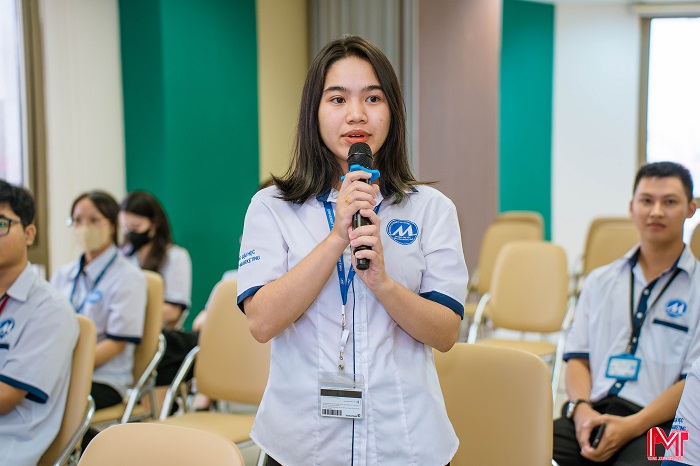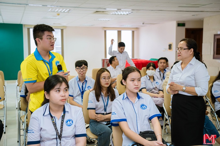 Các bạn sinh viên UFM còn vô cùng hân hạnh khi được giao lưu với chị Hồ Lê Thu Hiền - Phó Giám đốc Ngân hàng BIDV – Chi nhánh Bắc Sài Gòn. Đây là cơ hội quý giá cho sinh viên UFM khi được tương tác và học hỏi bởi một người có bề dày kinh nghiệm và kì cựu trong nghề, các bạn không chỉ được chia sẻ về kiến thức mà còn được biết đến môi trường, điều kiện tuyển dụng, cơ hội thăng tiến và một trong những vấn đề mà các bạn cực thích đó là việc các bạn sẽ được đơn vị tiếp nhận thực tập. Một cách rất hay để trau dồi kiến thức là đặt ra những câu hỏi về thắc mắc của bản thân về các vị trí, các phòng ban để hiểu tường tận về trách nhiệm và nhiệm vụ của mỗi bộ phận tại BIDV – chi nhánh Bắc Sài Gòn. Mọi người đã cùng nhau trao đổi ý kiến, những tình huống mà các bộ phận hay gặp phải với khách hàng và đưa ra góp ý xử lý tình huống phù hợp nhất, từ đó sinh viên cũng tích lũy được những bài học đầy bổ ích.