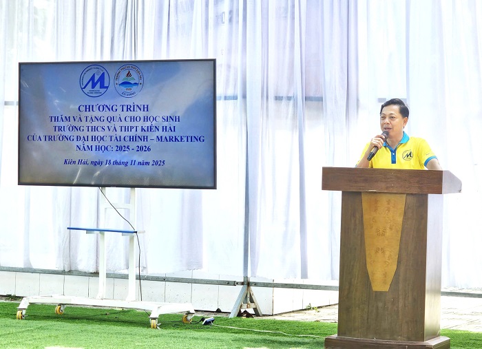 Trong năm 2025, hưởng ứng các hoạt động kết nối, phục vụ cộng đồng, Trường Đại học Tài chính – Marketing (UFM) đã tổ chức chuyến công tác thiện nguyện đến Tiểu khu Hòn Tre thuộc huyện Kiên Hải, tỉnh An Giang. Chương trình được triển khai theo chuỗi hoạt động vì cộng đồng của Nhà trường, thể hiện rõ cam kết đồng hành cùng địa phương, chia sẻ khó khăn với người dân vùng biển đảo xa đất liền.