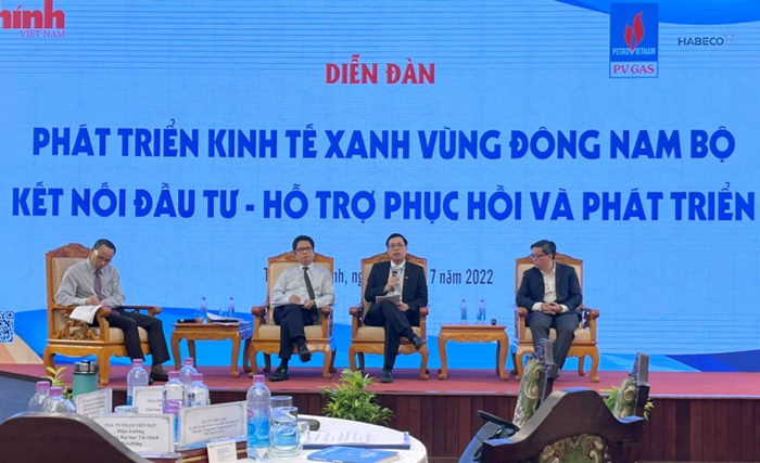 Chiều ngày 29/7/2022, Diễn đàn “Phát triển kinh tế xanh vùng Đông Nam Bộ: Kết nối đầu tư - Hỗ trợ phục hồi và phát triển” do Thời báo Tài chính Việt Nam chủ trì, phối hợp với các đơn vị liên quan đã diễn ra tại Hội trường Thống Nhất (Tp. Hồ Chí Minh) với sự tham dự của lãnh đạo UBND, lãnh đạo các sở, ngành các tỉnh, thành phố thuộc vùng Đông Nam Bộ: TP. Hồ Chí Minh, Bà Rịa - Vũng Tàu, Bình Dương, Đồng Nai; lãnh đạo các trường Đại học trú đóng trên địa bàn và đại diện các doanh nghiệp.